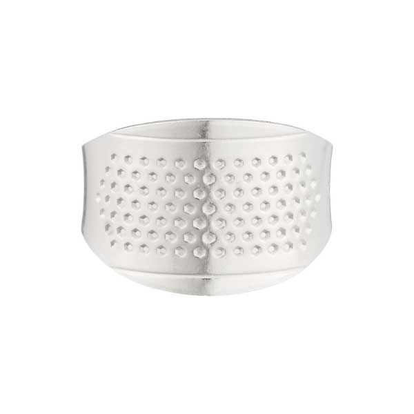 扱いやすいフリーサイズ。針の頭を指ぬきにあてて、親指と人差し指で軽くつかみながら針を持つと、