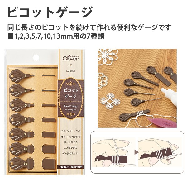 複数のピコットを続けて作ることができ便利です。糸が触れる部分に角(かど)がないので、ピコットが綺麗に仕上がります。
