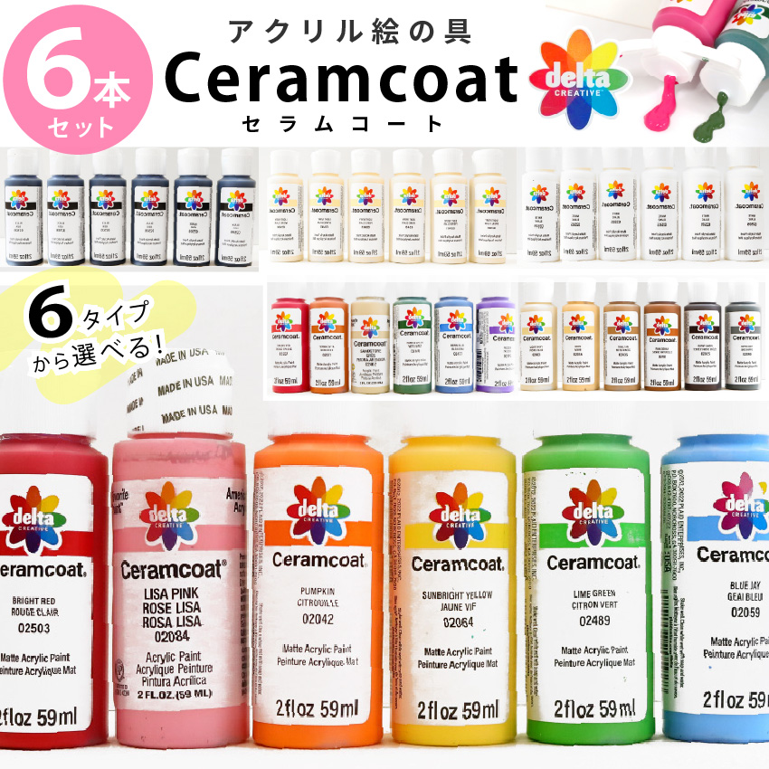 アクリル絵の具 6本セット 絵の具 セラムコート 2オンス 白 ホワイト 黒 ブラック 生成 アイボリー 暖色 赤 オレンジ 紫 ピンク 黄 ベージュ 茶 ブラウン