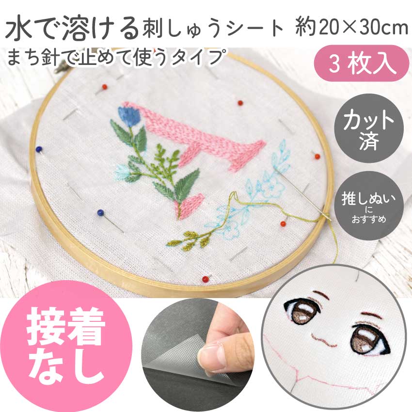 刺しゅうシート 水溶性デザイントレースシート 接着なし 20×30cm 3枚入 刺繍 トレースペーパー 刺しゅう 図案写し 爆買