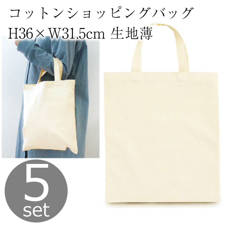 コットンショッピングバッグ 5個入 ナチュラル H36×W31.5cm 生地薄