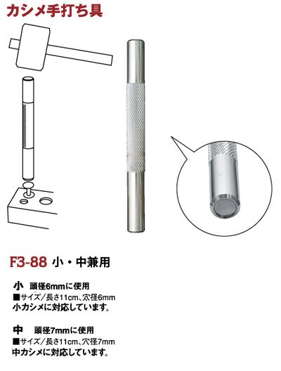 カシメ打ち棒 小 中サイズ 小カシメ対応、頭径6〜7mm