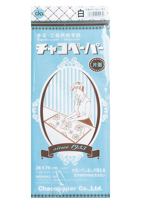 布の上にチャコペーパーを置き、上の図案の通りになぞると写ります。