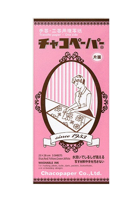 5色のチャコペーパーが入っていますので、生地の色合いで選ぶことができます。