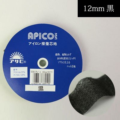 アピコ 巾12mmx20m 黒 編み物、ニット地等、伸縮素材に適した伸び止めテープ