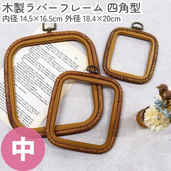 刺しゅう用 プチフレーム 木製ラバーフレーム 四角型 中 刺しゅう枠 刺繍 内径14.5×16.5cm 外径18.4×20cm