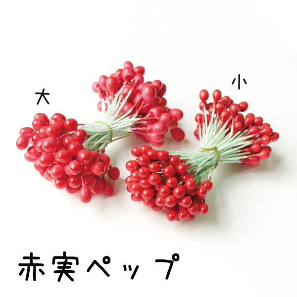 フラワーペップ 赤実ペップ 大 72本入 クリスマス Xma ひいらぎ クリスマスリース 造花 つまみ細工 花芯