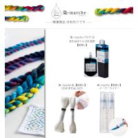 染-marche パウチ50またはボトル200各色、染-marche 糸(20/6または20/3)、染-marche イージーライナー、ラップ、中性洗剤、透明カップ容器(糸1かせにつき1個、200ml以上)、軽量カップ(水を測る際に必要)