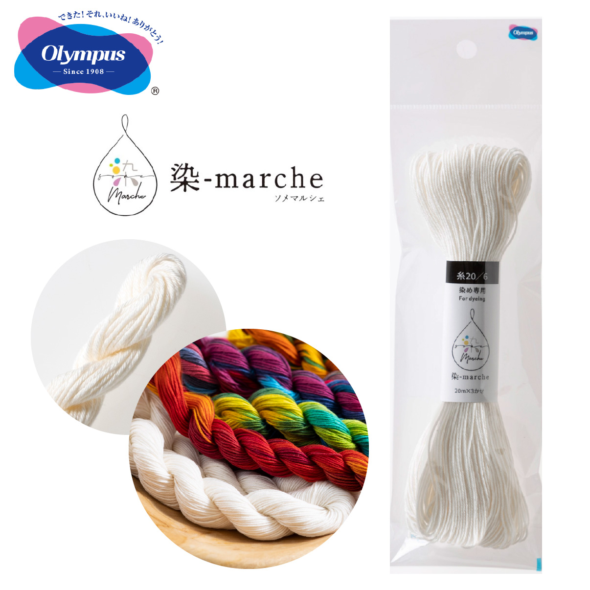 オリムパスだからできる良質な仕上がりで、手染めした後も多様な手芸にお使いいただけます。