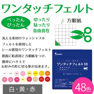 ワンタッチフェルト 18×18cm 白 黄 赤