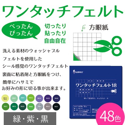 ワンタッチフェルト 18×18cm 緑 紫 黒
