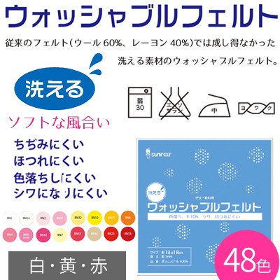 ウォッシャブルフェルト 18×18cm 白 黄 赤