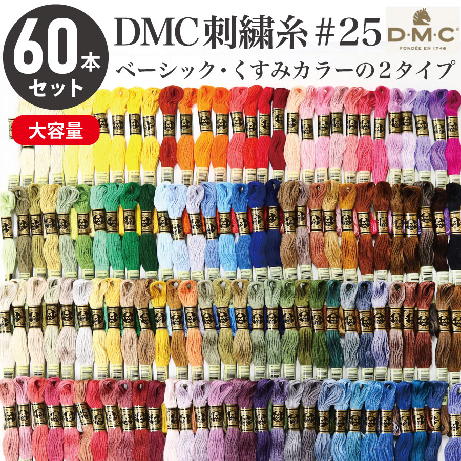 刺繍糸 DMC 25番 8m 60本セット 2種類 刺しゅう糸 ししゅう 刺しゅう 糸 フランス刺しゅう くすみカラー 爆買
