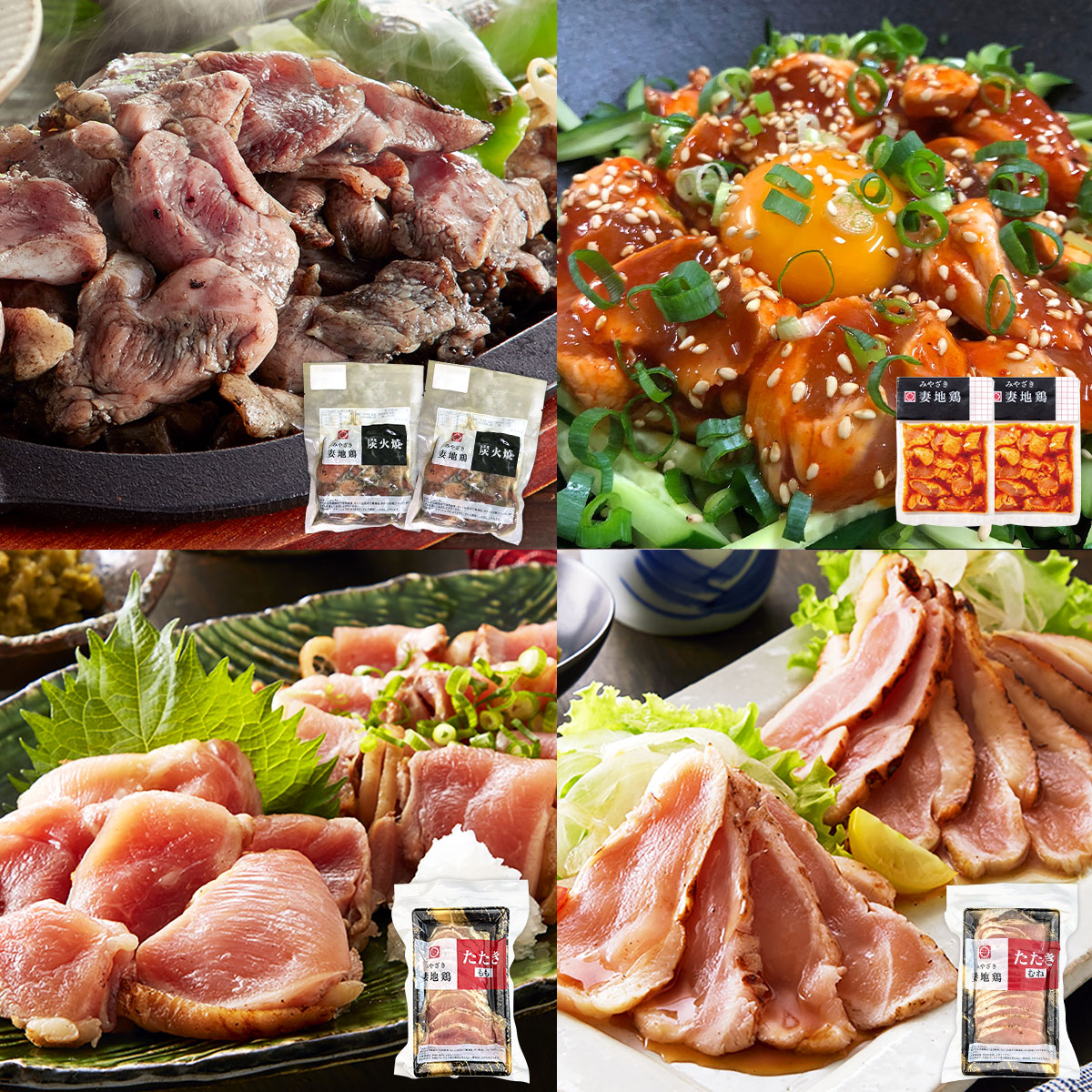 | 内容 | 1.妻地鶏 炭火焼プレミアム 100g×2【冷凍】 2.妻地鶏 たたきもも 100g【冷凍】 3.妻地鶏 たたきむね 150g【冷凍】 4.妻地鶏 ささみユッケ 150g×2【冷凍】 |