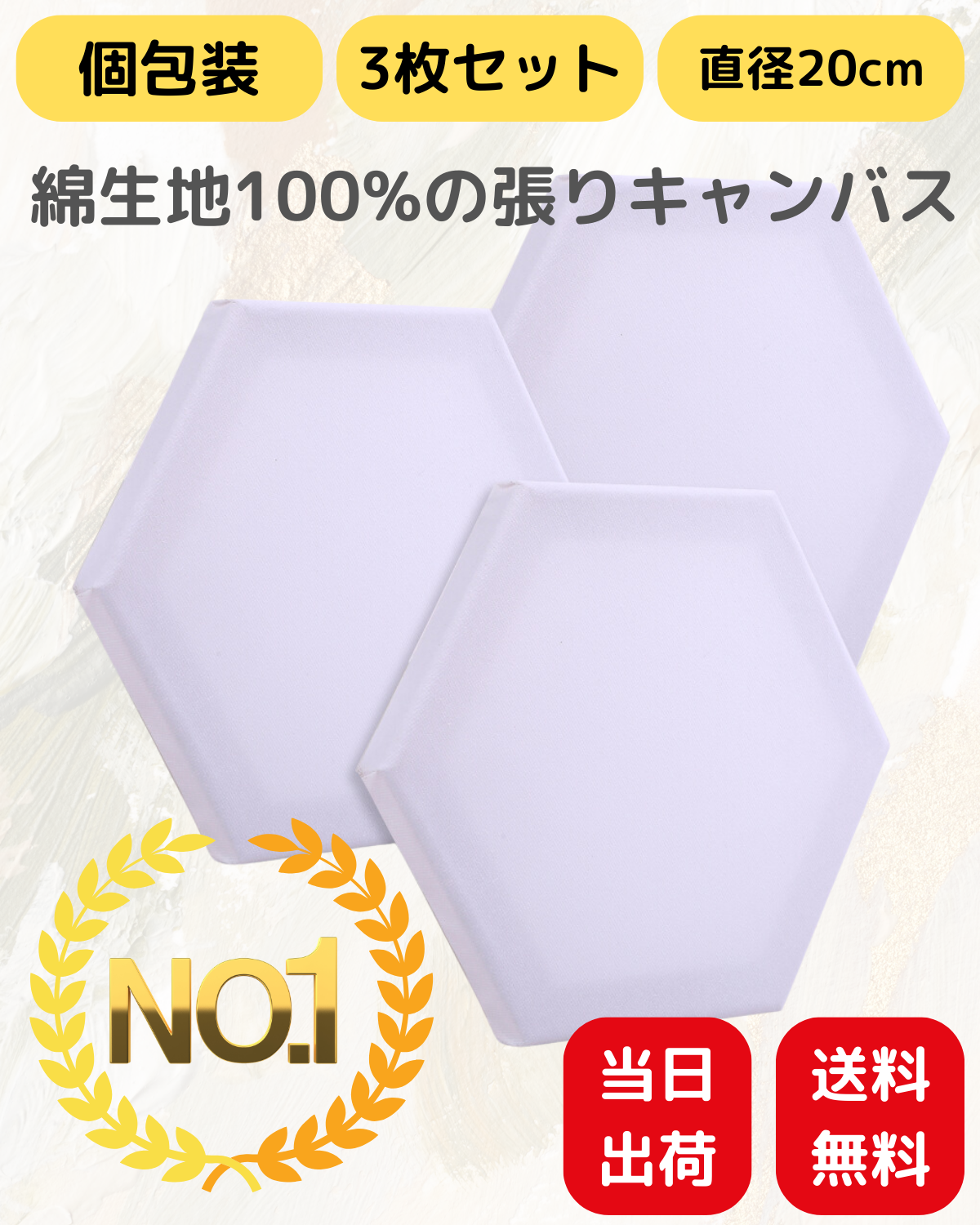 キャンバス 張りキャンバス キャンバスボード 画材 絵画 水彩画 油絵 3個セット 六角形 直径20cm
