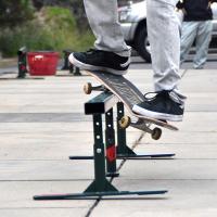 スケートボードセクション レールのセンターの脚は無段階の高さ調節が可能。地面に対してしっかりレールを固定させることが出来ます。