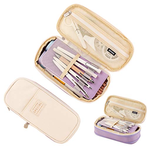 iSuperb ペンケース ペンポーチ 筆箱 筆入れ デザイン 収縮でき 高校生 かわいい 中学生 人気 少女 女の子 シンプル (パープル)