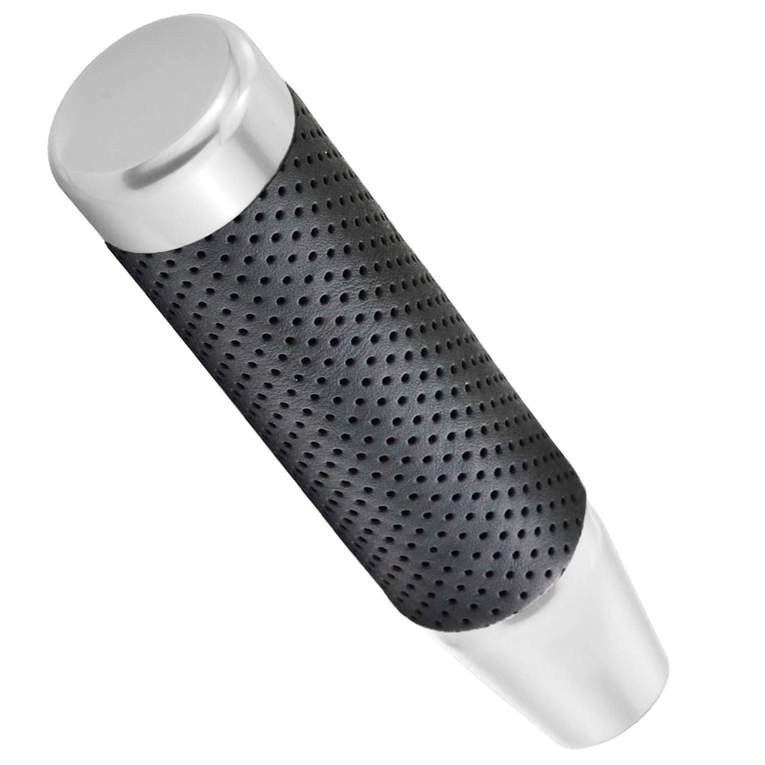 Lunsom 130mm シフトノブ アルミアロイ 車用シフトレバー シフトノブPU革 オートマとマニュアル車に適用します (シルバー)