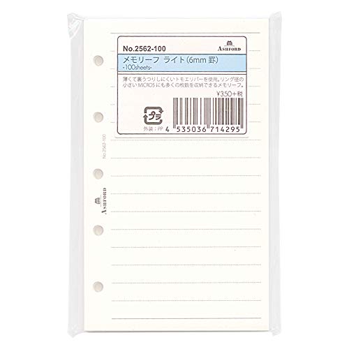 ミニ5穴サイズ メモリーフ ライト 6mm 罫線 100枚 システム手帳リフィル 2562-100