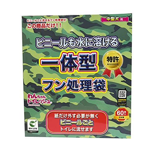 この製品は小型~中型犬用のウンチ処理袋です。(やわらかいウンチや大型犬には二重にして使用してください) この製品はウンチを袋にいれたままトイレに流せます。(水に溶けるので、トイレが詰まることはありません) ウンチを収納したあとは、なるべく早くトイレに流してください。 この製品は同時に二枚以上トイレに流さないでください。 この製品はトイレに流すまでは、水にぬらさないでください。