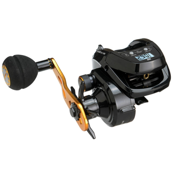 バックライト付き大型液晶パネル、簡単糸巻き入力、簡単操作、電池交換可能なハイパフォーマンスリール。ビシアジ、青物ジギング、深場のタイラバ等楽しめるPE3号200m仕様。