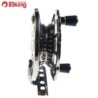| 深ダナ攻略や自然な仕掛けの落し込みを容易にこなすダブルハンドル仕様です。ノブは大物にはじかれることのないノンスリップラバーを装着、カーボンパイプがデザインを引き締めます。スプールは底面をV字形状に削り込むことで巻き上げトルクを増幅させ、年無しでも安定したやりとりを可能にする新生WING-Vスプールを初搭載!!タックルのセッティング時など、不意のバックラッシュを効果的に防ぐクリックストッパーも搭載し、へチ専用リールの未来を感じさせるスペックとデザインの融合がいま、衝撃のデビュー!! □カラー:チタン/ゴールド □自重(g)115 □スプール径/スプール幅(mm)/(mm)88/22 □標準糸巻量(m)2-100、2.5-100、3-100 □ボールベアリング:2 |