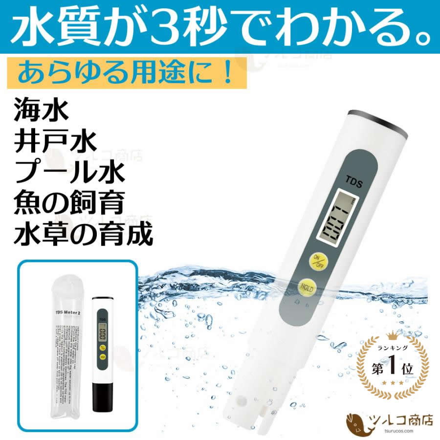 【再入荷!】 水質測定器 水質検査 水質計 TDSメーター デジタル 不純物濃度計 水質管理 災害時 水槽 川 温泉 不純物