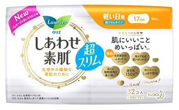 花王 ロリエ しあわせ素肌 超スリムタイプ 軽い日用 羽なし 17cm (32個) 生理用ナプキン 備蓄 【医薬部外品】