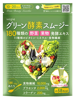 ●原材料:水溶性食物繊維(アメリカ製造)、ブドウ糖、大麦若葉末、リンゴ果汁パウダー、パナナパウダー、ほうれん草末、野菜ミックスパウダー(大麦若葉、ケール、ブロッコリー、南瓜、チンゲン菜、パセリ、ニンジン、セロリ、苦瓜、ほうれん草、桑の葉、モロヘイヤ、よもぎ、トマト)、抹茶、コラーゲンペプチド、グルコマンナン、豚プラセンタ抽出物、穀物発酵エキス末、野草発酵植物エキス末(デキストリン、野草発酵エキス(オリゴ糖、砂糖、甜菜糖、よもぎ、うこん、黒砂糖、どくだみ、ハチミツ、高麗人参、その他))、植物発酵物乾燥粉末(デキストリン、黒糖、果実・野菜(オレンジ、パイナップル、バナナ、リンゴ、パパイヤ、グァバ、ニンジン、キウイフルーツ、その他)、野草エキス(パフィア、ローズマリー、カツアバ、紫イペ、キャッツクロー、その他)、穀物(玄米、インゲン豆、トウモロコシ、オーツ麦、大麦、エンドウ豆、カシューナッツ、黒ゴマ、キビ、大豆、ライ麦、その他)、海藻(わかめ、昆布、海苔)、ハチミツ)、植物発酵エキス(デキストリン、甜菜糖、黒砂糖、麦芽糖、よもぎ、うこん、どくだみ、ハスの葉、高麗人参、センシンレン、オトギリ草、クマザサ、タンポポの根、霊芝、アマチャヅル、トチュウの葉、オオバコ、甘草、松葉、南天の葉、アマドコロ、ツユ草、ツルナ、マカ、トンカットアリ、ハブ草、ハト麦、スギナ、ビワ葉、羅漢果、クコの実、レンセンソウ、桃の葉、イチョウ葉、ニンドウ、イチジクの葉、ベニバナ、エゾウコギ、エンメイ草、モロヘイヤ、セッコツボク、アカメガシワ、クコの葉、柿の葉、カミツレ、カリン、紫蘇葉、桑の葉、メグスリの木、田七人参、キキョウの根、ナツメ、マタタビ、エビス草の種子、紅参、アガリクス、ルイボス、アムラの実、タマネギ外皮、サラシア、キャッツクロー、梅、金柑、イチジク、みかん、パイナップル、リンゴ、グレープ、メロン、レモン、グレープフルーツ、杏、トウガラシ、生姜、椎茸、ニンジン、玉ねぎ、パセリ、キャベツ、ごぼう、もやし、にんにく、昆布、ふのり、大豆、コリアンダー、ピーマン、山芋、ほうれん草、いんげん豆、百合の根、黒小豆、アスパラガス、にら、せり、れんこん、きくらげ、マンゴー、レイシ、パパイヤ、梨、バナナ、ビワ、グァバ、スターフルーツ、レンブ、パッションフルーツ、リュウガン、スイカズラ、ハイビスカス、こうぞりな、やまたばこ、抹茶)、パン酵母(マンガン、亜鉛、銅、モリブデン、ヨウ素、セレン、クロム含有)/増粘多糖類、甘味料(アセスルファムK、スクラロース)、V.C、香料、酸味料、V.E、ナイアシン、パントテン酸Ca、乳化剤、V.B1、V.B6、V.B2、V.A、葉酸、V.D、V.B12、(一部に小麦・ゼラチン・豚・大豆・やまいも・ごま・りんご・オレンジ・バナナ・キウイフルーツ・カシューナッツを含む)