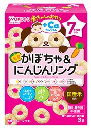 和光堂 赤ちゃんのおやつ +Caカルシウム かぼちゃ&にんじんリング 7か月頃から (4g×3袋) ベビーおやつ JANコード:4987244183514