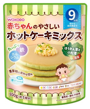 和光堂 赤ちゃんのやさしいホットケーキミックス ほうれん草と小松菜 9か月頃から幼児期まで (100g) ベビーおやつ JANコード:4987244183880
