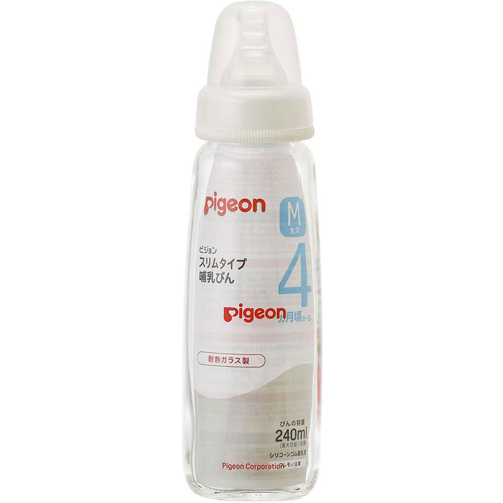 ピジョン スリムタイプ 哺乳びん 240mL (1本) 耐熱ガラス製 シリコーンゴム製乳首付 哺乳瓶 JANコード:4902508003636