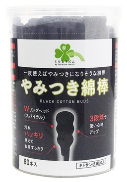 くらしリズム やみつき綿棒 (80本入) キトサン抗菌加工 ブラックめんぼう