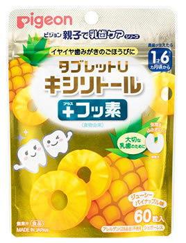 ピジョン タブレットU キシリトール+フッ素 ジューシーパイナップル味 (60粒) 乳歯ケア用タブレット 1才6ヵ月頃から ※軽減税率対象商品