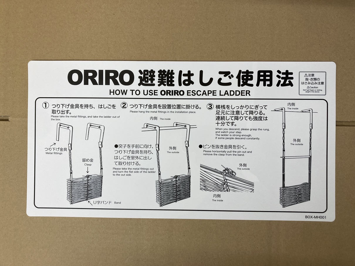 折りたたみはしご 自在金具 使用法表示板 サイズ小 ORIRO 避難はしご標識 BOX-MH001