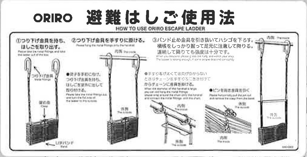 折りたたみはしご ナスカンフック 使用法表示板 ORIRO 避難はしご標識 MKH002