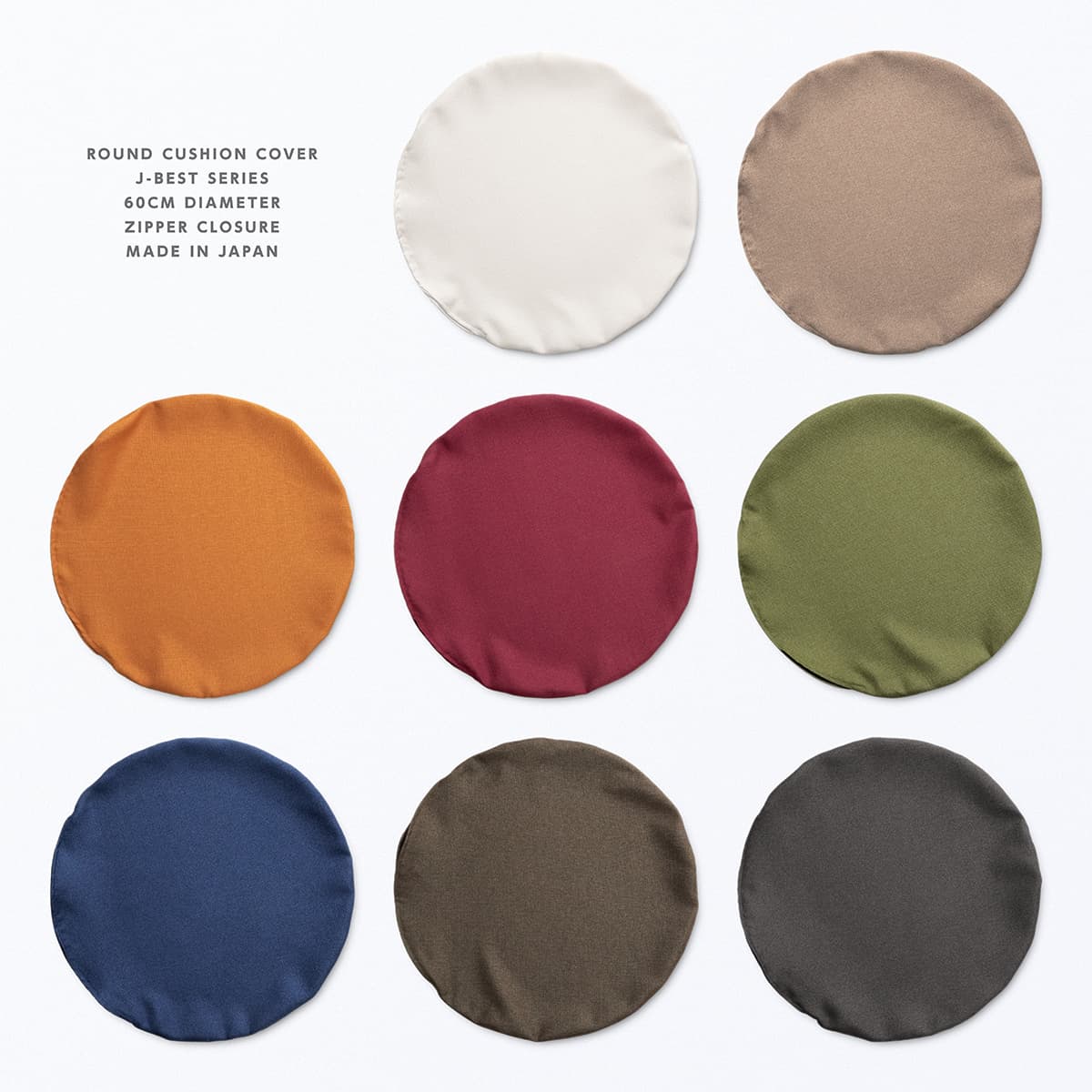 ラウンドクッションカバー 直径約60cm 日本製 ジェーベスト ざっくり質感のシャンブレー調生地 円形 フロア用 シンプル 無地