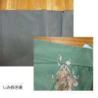 絹の着物は水で丸洗いをすると全体が縮むので縮まない用剤で丸洗いしますが、この用剤は落ちる汚れと落ちない汚れがあります。