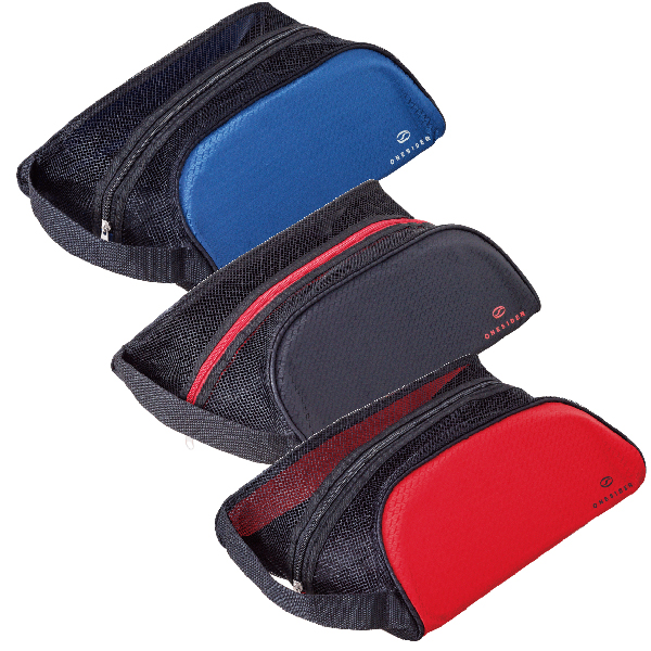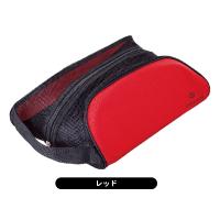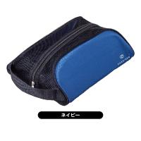シンプルなデザインのシューズケース。中央にファスナー仕様の広い開閉口を配置し、シューズの出し入れがしやすい構造です。メッシュ素材を採用したことで、通気性にも優れています。持ち手が付いているので、持ち運びにも便利なモデルです。