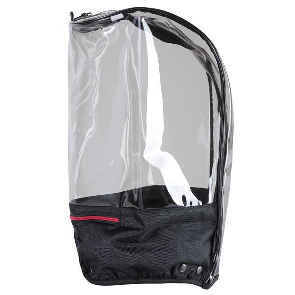 キャディバッグ用のフードカバーです。口枠に当たる部分には伸縮性のあるゴムが入っており、8.5型から10型程度までのキャディバッグに対応しています。口枠ハンドル付きのキャディバッグにも装着可能で、フードカバー内が確認しやすいクリア仕様になっています。