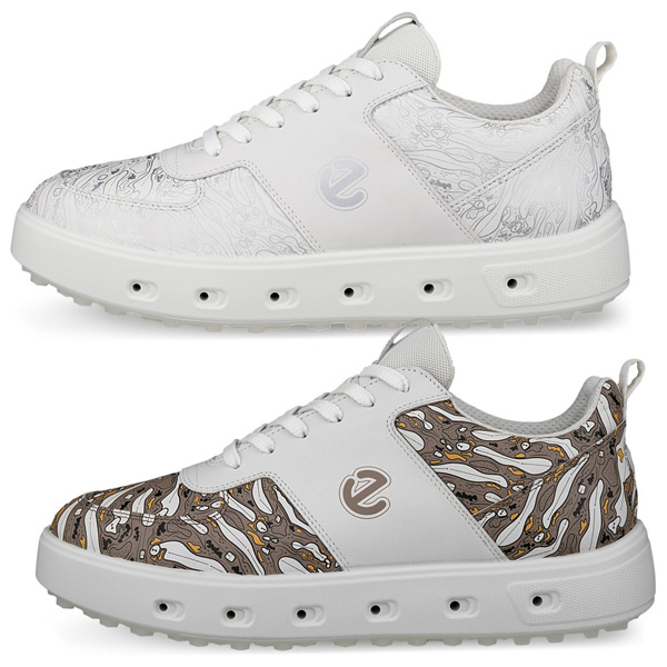 スニーカーに見えるデザインでありながら、ゴルフシューズとして優れたパフォーマンスを実現したハイブリッドモデルです。アッパーに高い質感・快適性・耐久性を持つパフォーマンスレザーを採用し、防水・透湿技術のGORE−TEX(ゴアテックス)サラウンドテクノロジーを搭載することでアッパーからソールにいたるまで全方位での優れた防水・透湿機能を発揮します。ミッドソールにはベンチレーションホール(通気孔)を装備しており、湿気を放出してシューズ内を常にドライに保ちます。また、ユニークな形状のトラクションバーを搭載したE−DTSツイストアウトソールが多方向に高いグリップ力を発揮し、摩耗の激しい部分には大きめのトラクションバーを配置することで優れた耐久性も持たせました。ミッドソールはecco独自のFLUIDFORM製法を施し、ソールを液状で流し込むことで人間工学に基づくラスト(木型)のフォルムを再現し、足裏に吸い付くようなフィット感をもたらします。さらに、リムーバブルインソールが長時間のクッション性を提供するとともに、インソールを取り外すことで足幅の調整も可能になっています。