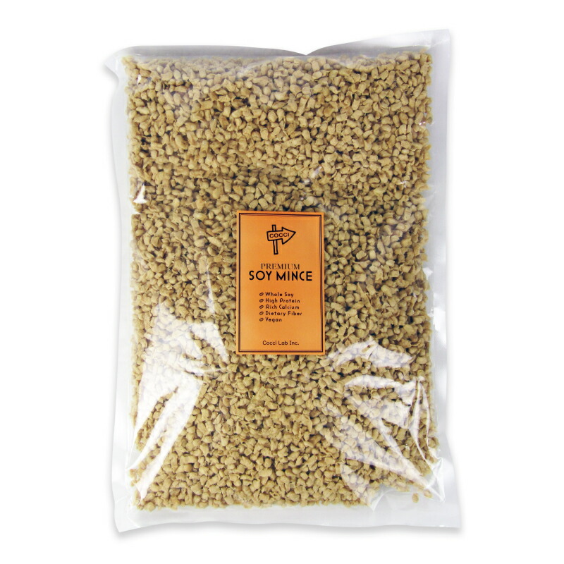 「プレミアムソイミンチ」は、国産大豆100%を丸ごと使ったミンチタイプの大豆ミートです。