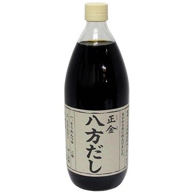 「正金 八方だし」は、めんつゆ、煮物、湯豆腐や鍋料理など、いろいろな料理に、濃いままでも、また薄めてもお使いいただける「八方出汁」です。