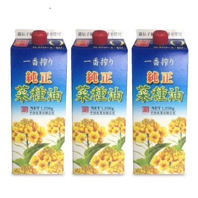 カネ源 平田 菜種油 菜たね油 なたね油 食用油コレステロール「ゼロ」。圧搾一番搾りのみを使用したピュアな菜種油です。