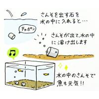 ※水中に溶け込む酸素の量は水温によって異なります。夏期は水中に溶け込む酸素の量が少なくなりますので、水1Lに対してさんそを出す石を2個使用してください。