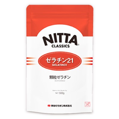 1.ふやかし不要新田ゼラチン独自の技術で特殊加工(特許)により、糖を含まない100%ピュアな顆粒状のゼラチンに成型しました。