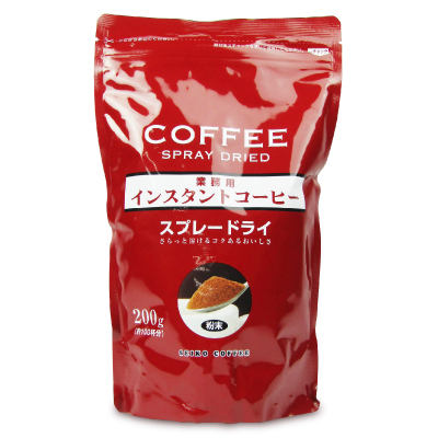 ブラジルの豆を使ったスプレードライ製法のインスタントコーヒーです。保存に便利なチャック付。