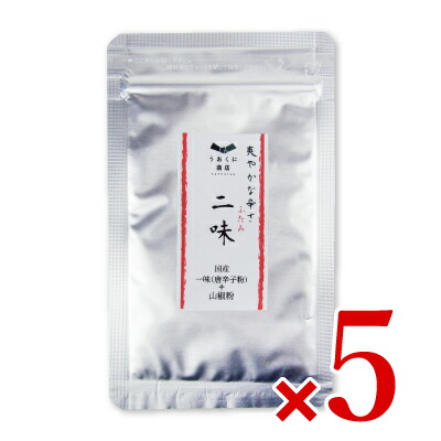 国産一味(唐辛子粉)+山椒粉紀州特産の大粒ブドウ山椒と、辛さの中に甘みのある鷹の爪唐辛子(国産)、2つの香辛料をブレンドしました。一味(唐辛子)+山椒で「二味(ふたみ)」です。