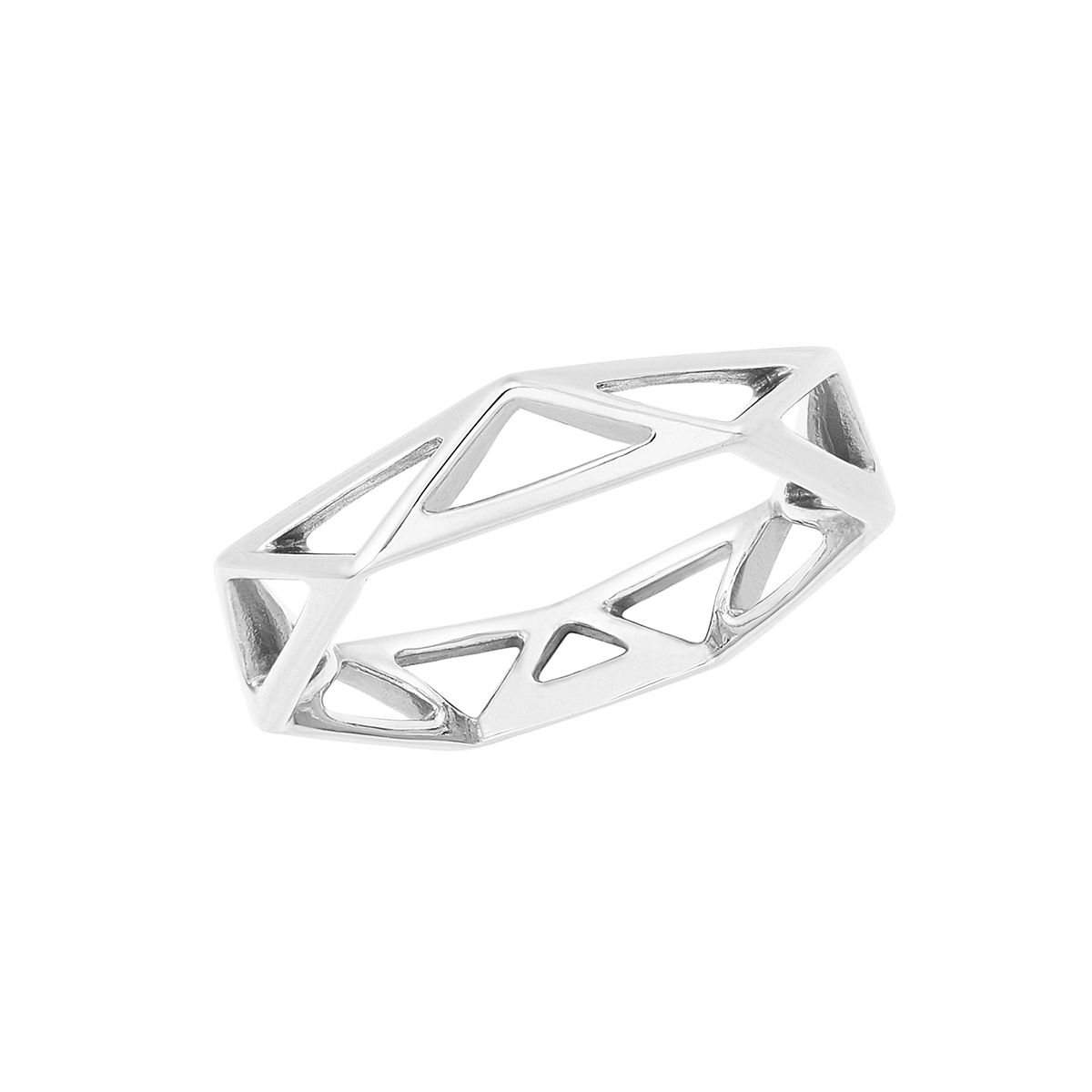 トライアングルモチーフのジオメトリック模様がモードなピンキーリング。