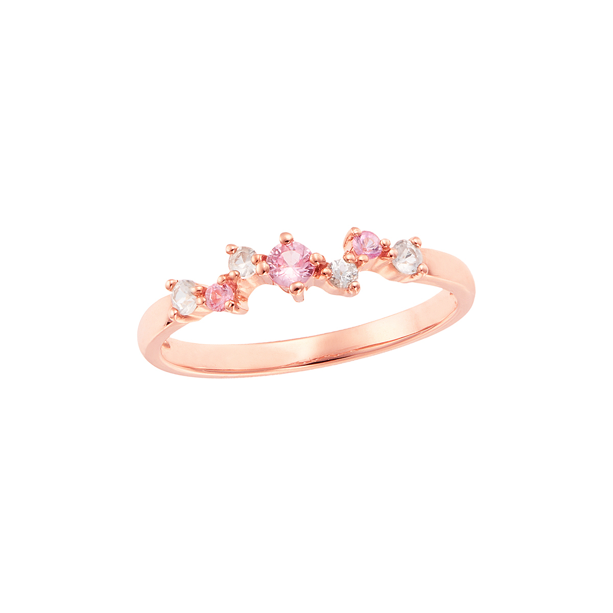 ピンクサファイアとホワイトサファイアがランダムにセットされたピンキーリング。